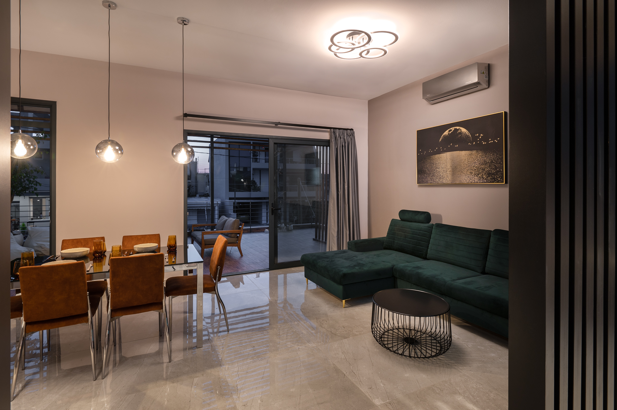 Το σαλόνι μας είναι ένας φιλόξενος και λειτουργικός χώρος, με μοντέρνα έπιπλα και διακόσμηση που δημιουργεί μια ζεστή και φιλόξενη ατμόσφαιρα. Η μεγάλη βεράντα προσφέρει μια εκπληκτική θέα στη θάλασσα όπου μπορείτε να απολαύσετε τον καφέ ή το γεύμα σας.